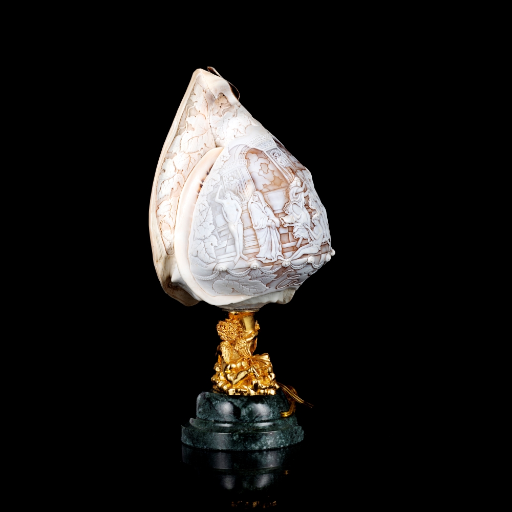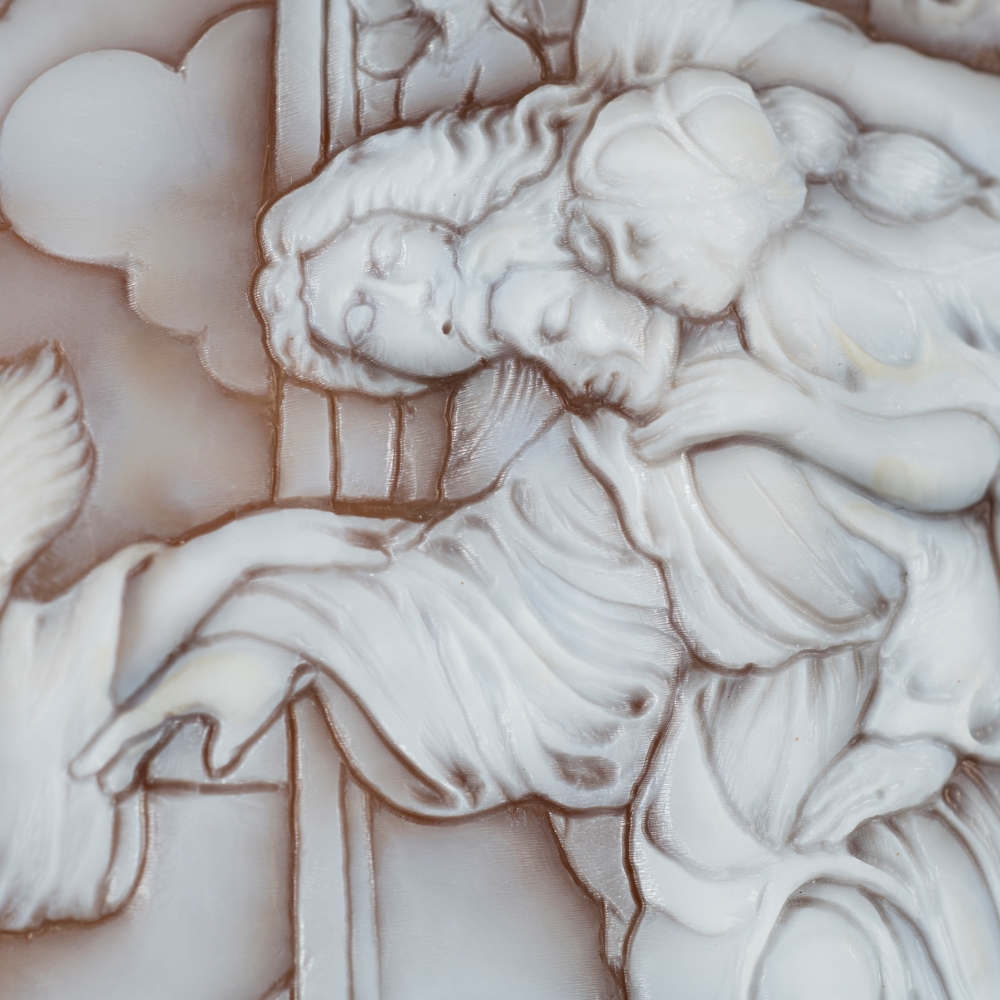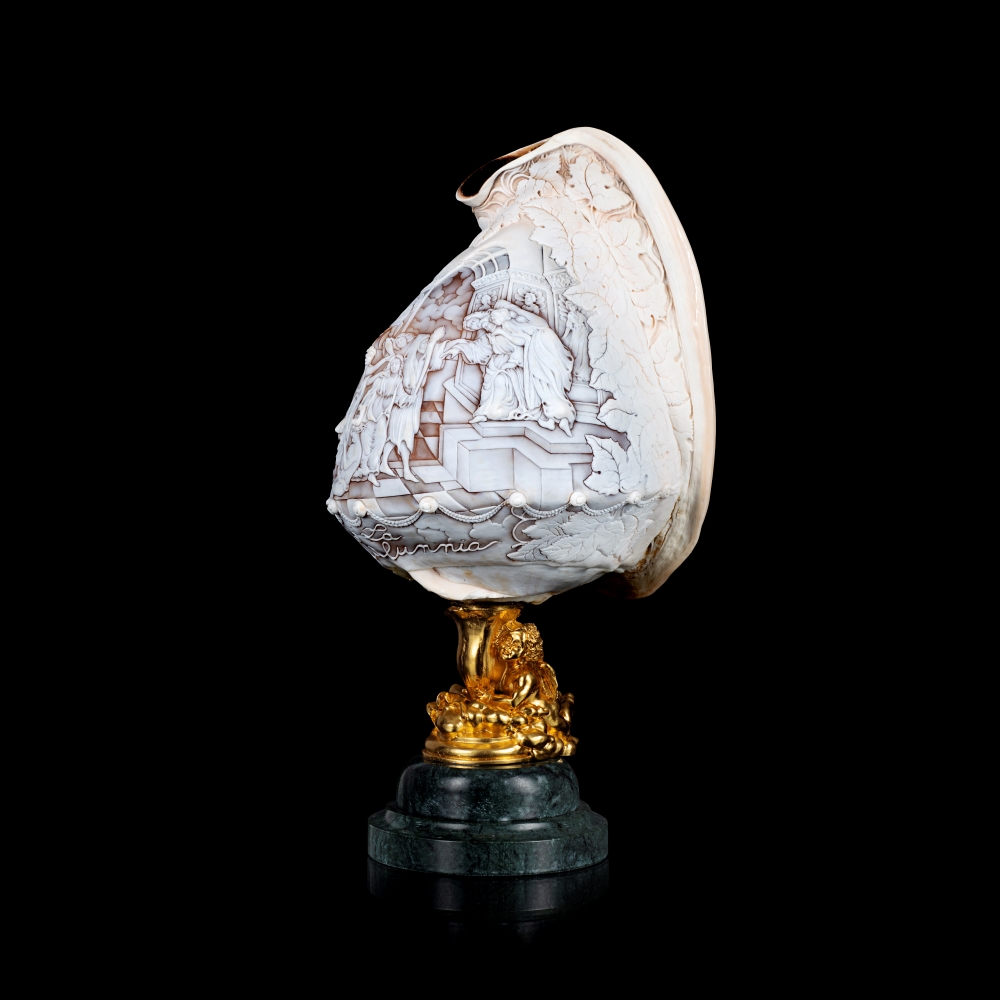 Il ricordo del suo laboratorio è ancora vivo nella sua mente, l’odore della pece, il rumore ritmico del bulino sui cammei in conchiglia, a volte di taglia grande, usati per orecchini e anelli, le sue grandi e ruvide mani, la sua gentilezza e la sua umiltà.