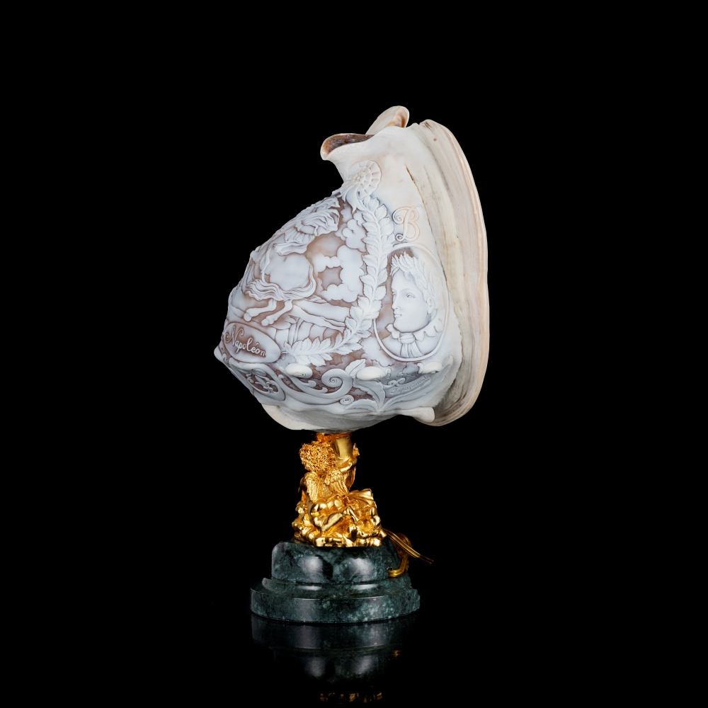 Il ricordo del suo laboratorio è ancora vivo nella sua mente, l’odore della pece, il rumore ritmico del bulino sui cammei in conchiglia, a volte di taglia grande, usati per orecchini e anelli, le sue grandi e ruvide mani, la sua gentilezza e la sua umiltà.