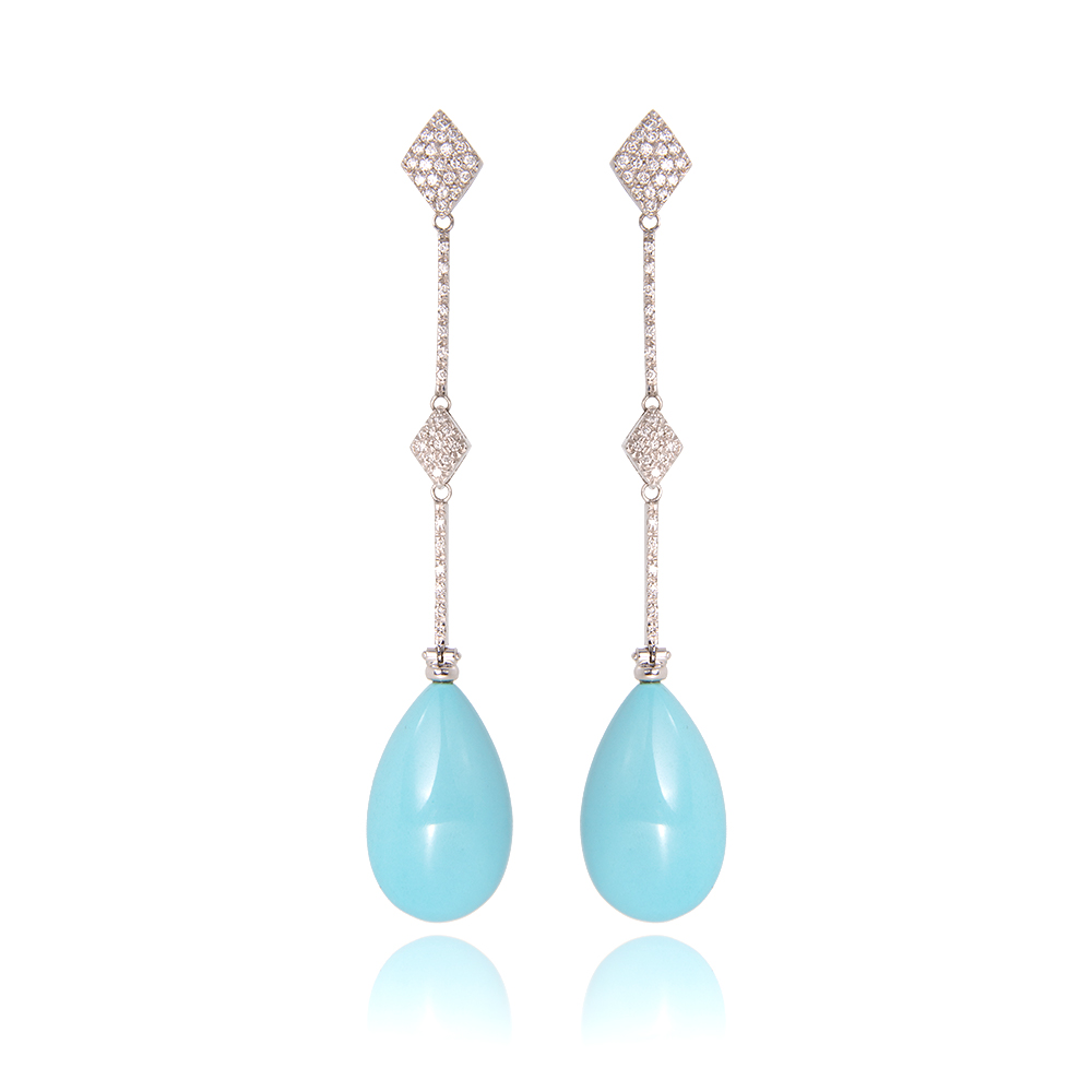 L’eleganza senza tempo della collezione Chic illumina ogni momento speciale. Cascate di diamanti culminano in due maestose gocce di turchese, rendendo questa coppia la più preziosa della collezione.