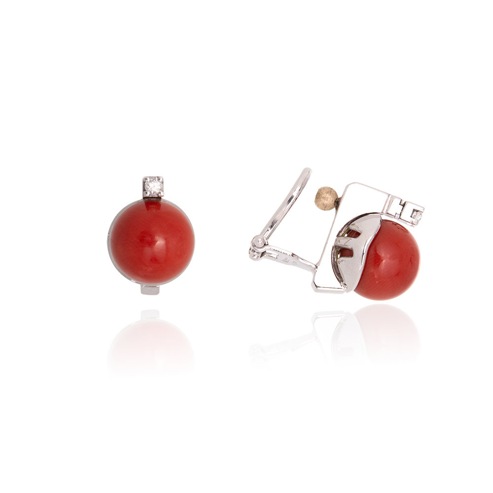 • Materiali: Corallo del Mediterraneo “Corallium Rubrum”, oro bianco 18 Kt e diamanti
